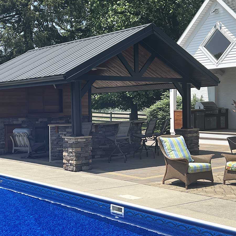 Beat the heat with a pool house or pavilion from Custom Outdoor Structures.